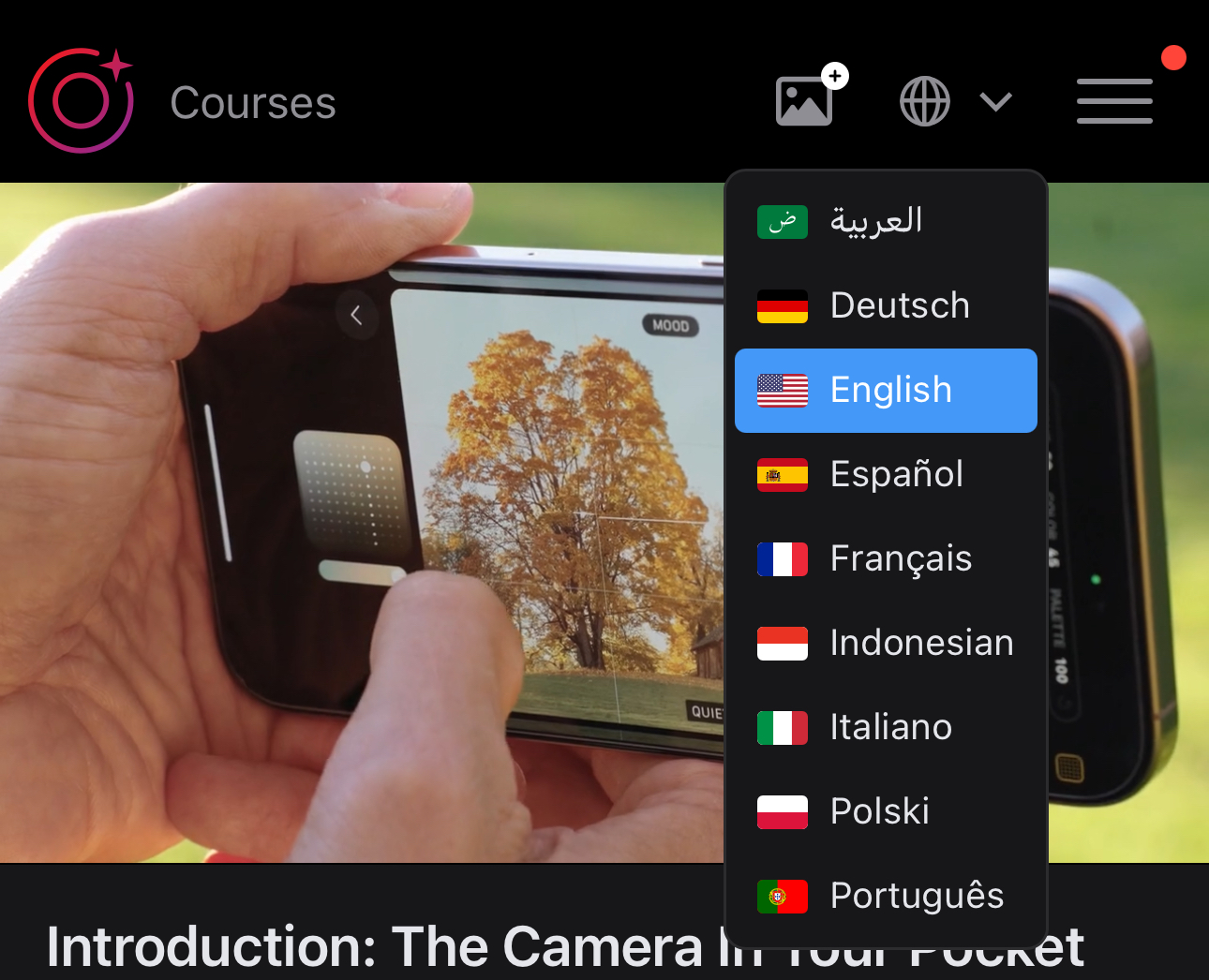 要更改語言,請點選右上角的地球圖示,然後從清單中選擇你偏好的語言。