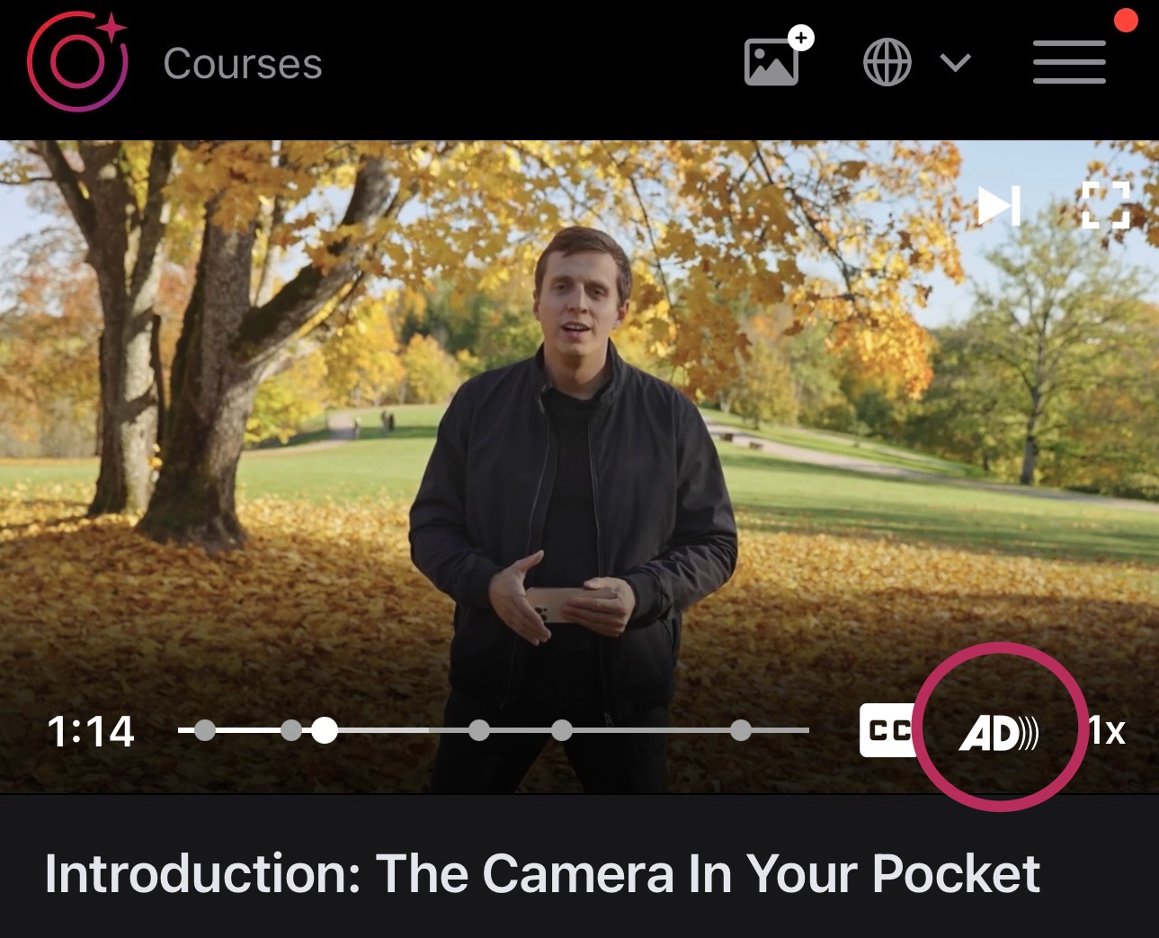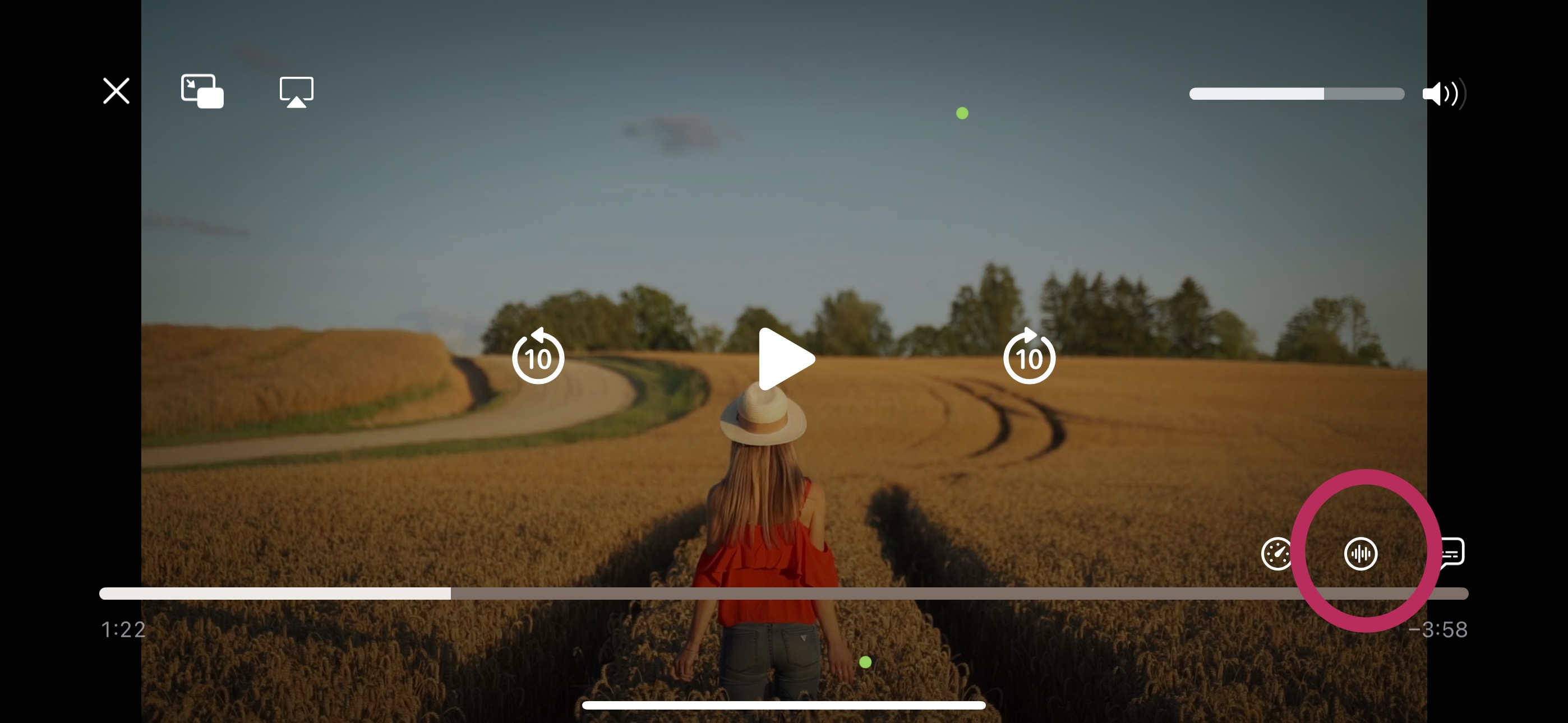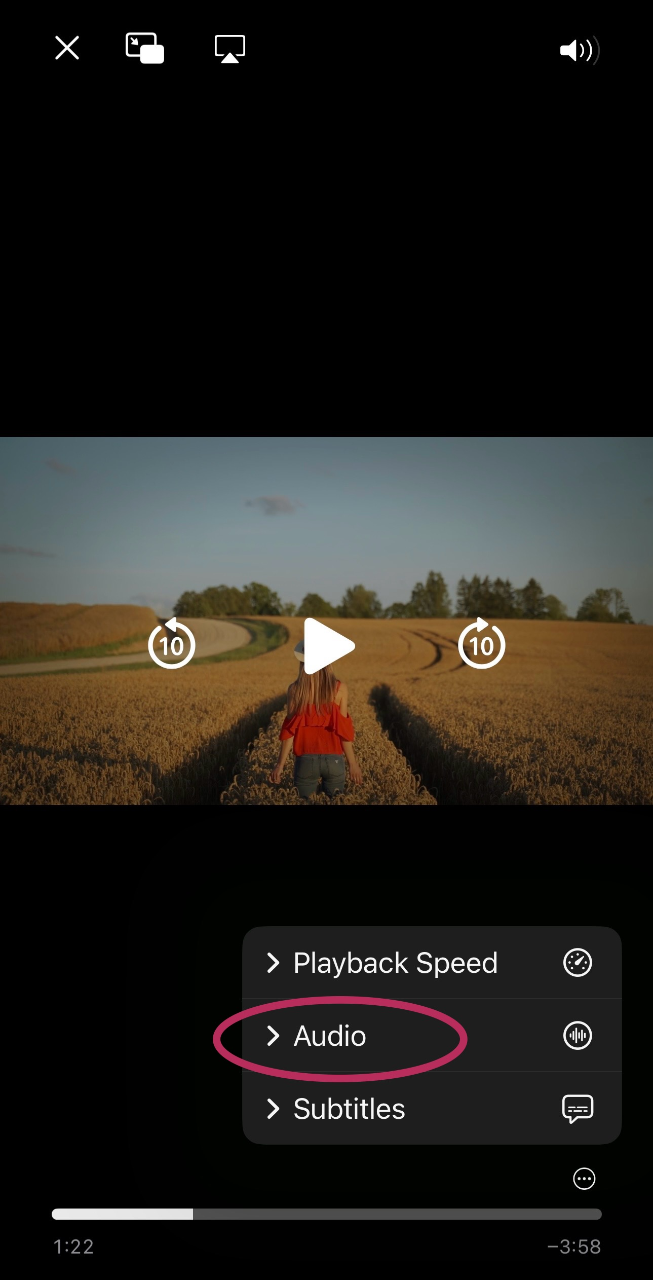 如果你沒有看到 AD)) 圖示,請先點一下螢幕,然後點選影片播放器右下角的三個點圖示。