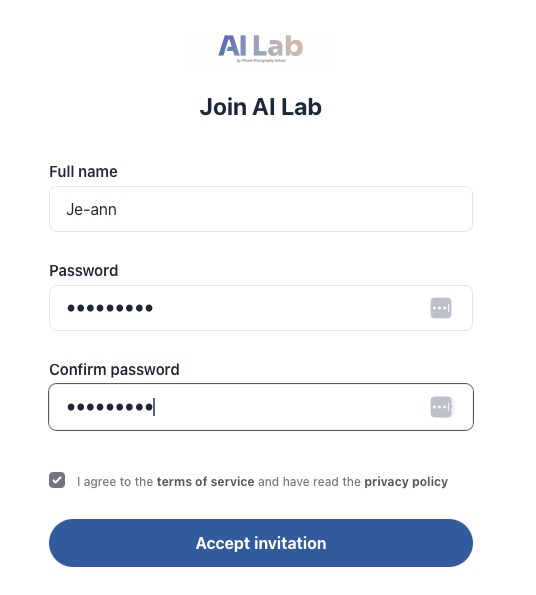 Once your account is created, you can log in anytime to access AI Lab and all available content.